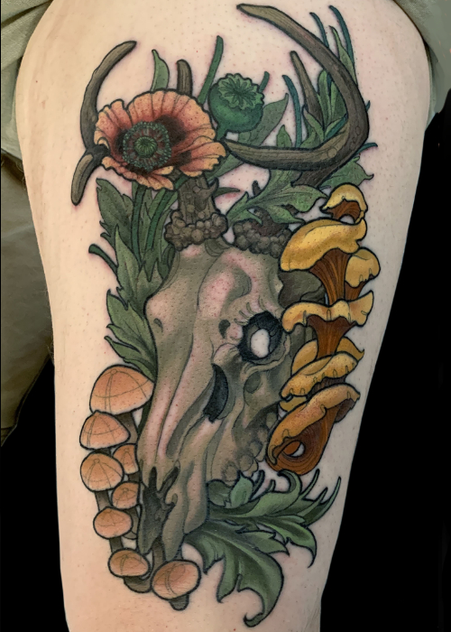 Katelyn hails from the quiet hills of Simi Valley,CA. Her lifelong love of nature had become the pathway to her tattoo style, the freedom of flow and endless opportunities seamlessly align with the flow of the human body. How the tattoo lays in coordination with our muscles and bone structure has always been really important to her, making sure that the client leaves with a tattoo that they really think could compliment them for the rest of their lives.